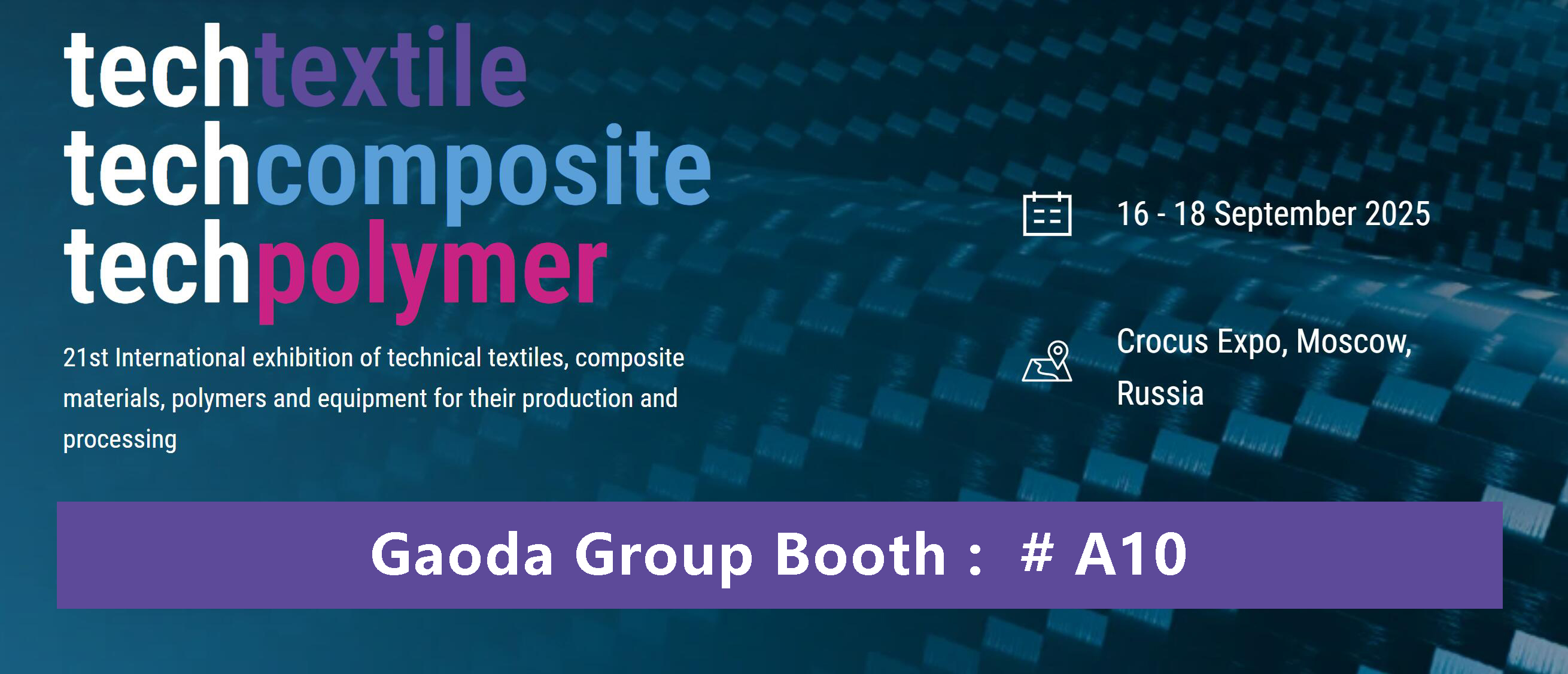 Skupina Gaoda bo sodelovala na razstavi Techtextil Russia 2025, ki bo potekala v Moskvi v Rusiji od 16. do 18. septembra. Kot vodilni svetovni proizvajalec visoko zmogljivih industrijskih tkanin bo skupina Gaoda predstavila celotno paleto PVC materialov za prevleko nožev, mrežastih materialov, visoko zmogljivih industrijskih tkanin za osnovno pletenje in okolju prijaznih izdelkov iz recikliranega pravega usnja.